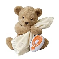 (More customer reviews)Ordered the bear for my son, he was having a hard time sleeping in his own room during the first few weeks we put him in his crib. The bear helped with the transition from his co-sleeper in our room into his crib in his room. I slept with the bear and the blanket for several nights to transfer my smell to them. We also recorded both my husband's and my voices on the recorder shushing and soothing the baby. We washed the bear and the blanket when we received them because they both had fuzz and strings on them. I actually washed the blanket twice to try to get all of the fuzz off of them. When they came out of the package they had a slightly chemical smell that came off when we washed them.