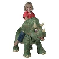 Loaded with cutting-edge animatronics features, Kota is a lifelike pet from the past. Kota will quickly become your preschooler's best friend, and his realistic features will leave kids in awe! Measuring over 40" long, tots can sit on Kota for some rompin' stompin' dino adventures. A hidden handle and spring-loaded seat provide a fun and safe ride. Kota's tail, head, eyes, horns and mouth are animated, and he comes with a fun music mode so riders can trounce along to dino songs. When he's hungry, kids can feed him special leaves and he'll be happy. Kota measures 21"L x 44"W x 28"H. Requires six "D" batteries, not included. Holds up to 60 lbs.